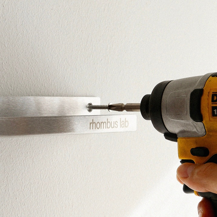 ❶ 水平を確認した上で、付属のネジを使って壁面に固定してください。
